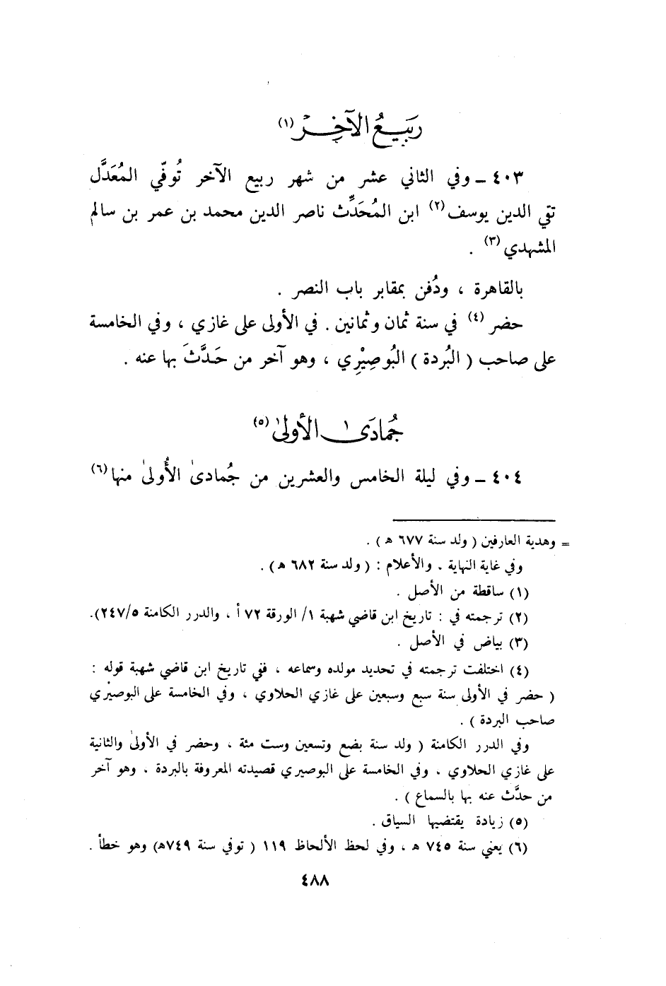 403 - وَفِي الثَّانِي عشر من شهر ربيع الآخر توفّي الْمعدل تَقِيّ الدّين يُوسُف بن الْمُحدث نَاصِر الدّين مُحَمَّد بن عمر بن سَالم المشهدي