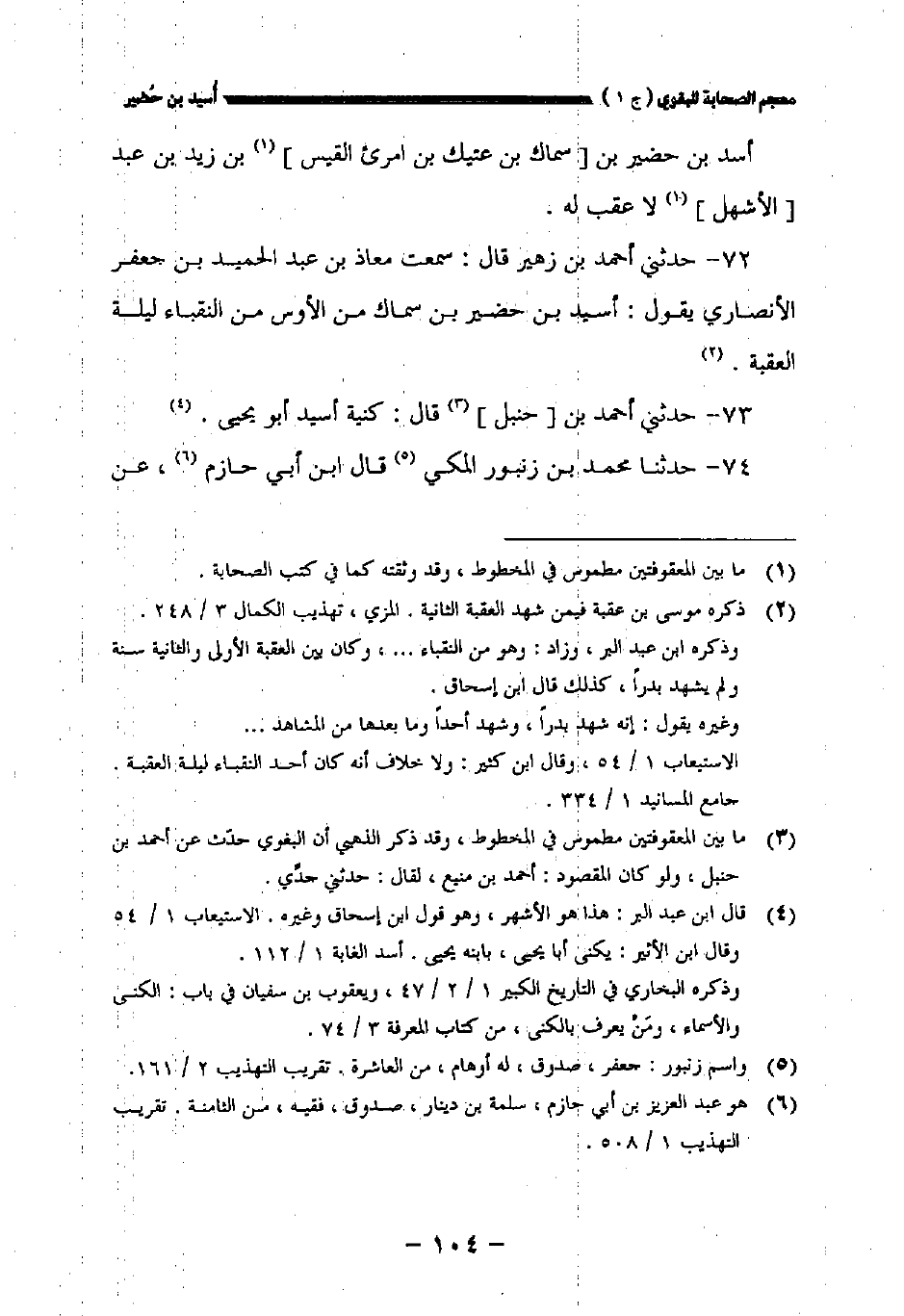 ٧٣ - حدثني أحمد بن [حنبل] قال: كنية أسيد أبو يحيى.