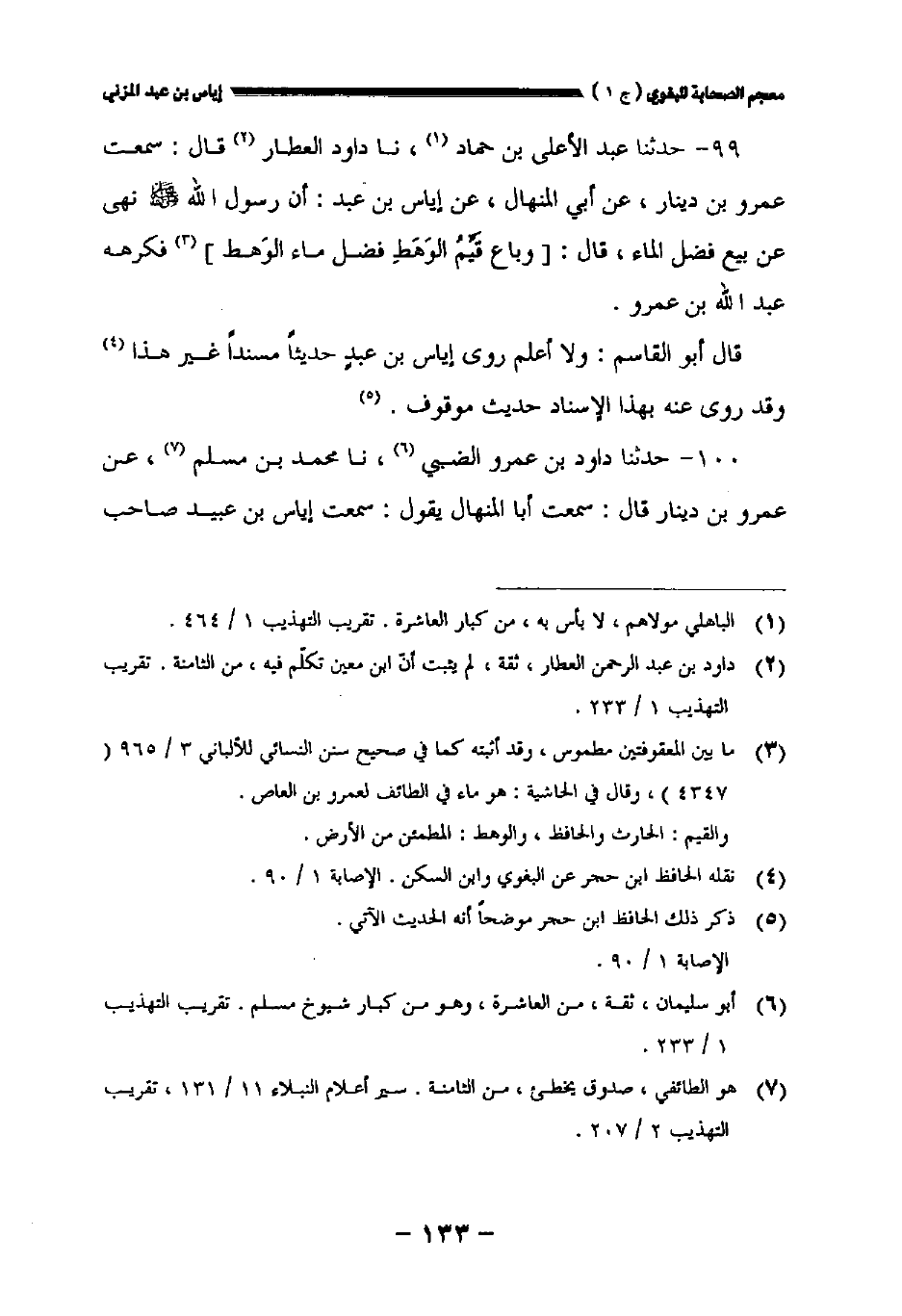 ٩٩ - حدثنا عبد الأعلى بن حماد نا داود العطار قال سمعت عمرو بن دينار عن أبي المنهال عن إياس بن عبد: أن رسول الله صلى الله عليه وسلم نهى عن بيع فضل الماء قال: [وباع قيم الوهط فضل ماء الوهط] فكرهه عبد الله بن عمرو.