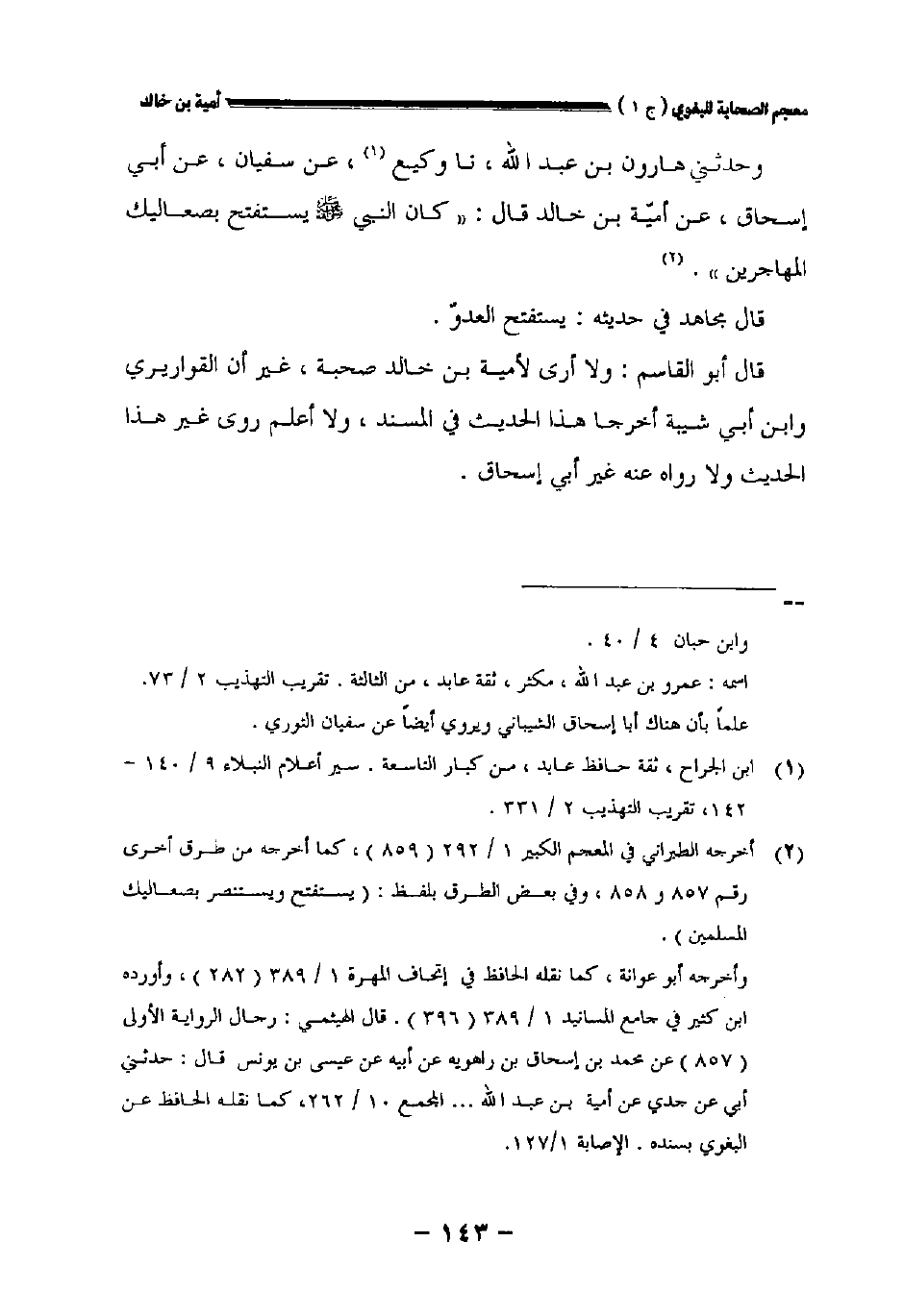 قال أبو القاسم: ولا أرى لأمية بن خالد صحبة، غير أن القواريري وابن أبي شيبة أخرجا هذا الحديث في المسند ولا أعلم روى غير هذا الحديث ولا رواه عنه غير أبي إسحاق.