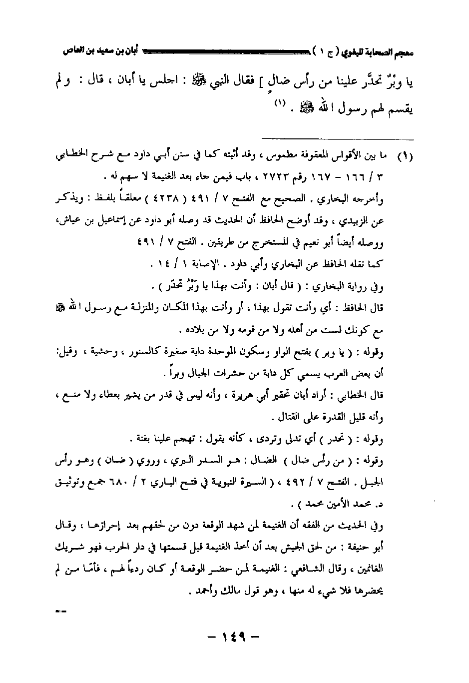 ياوبر تحدر علينا من رأس ضال] فقال النبي صلى الله عليه وسلم: اجلس ياأبان، قال: ولم يقسم لهم رسول الله صلى الله عليه وسلم.