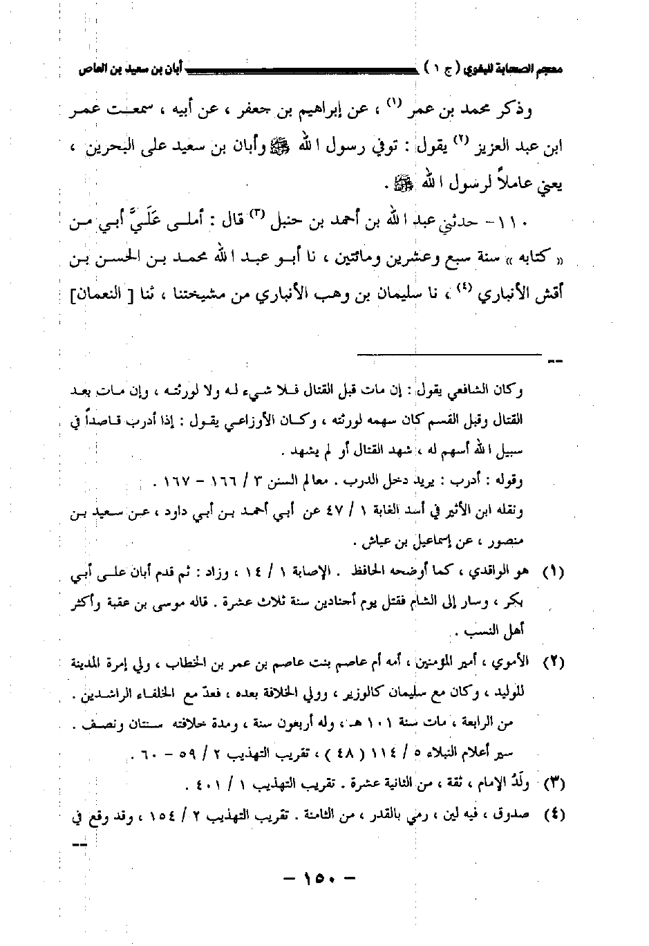 ١١٠ - حدثني عبد الله بن أحمد بن حنبل قال أملى علي أبي من كتابه سنة سبع وعشرين ومائتين نا أبو عبد الله محمد بن الحسن بن أقش الأنباري نا سليمان بن وهب الأنباري من مشيختنا ثنا [النعمان]