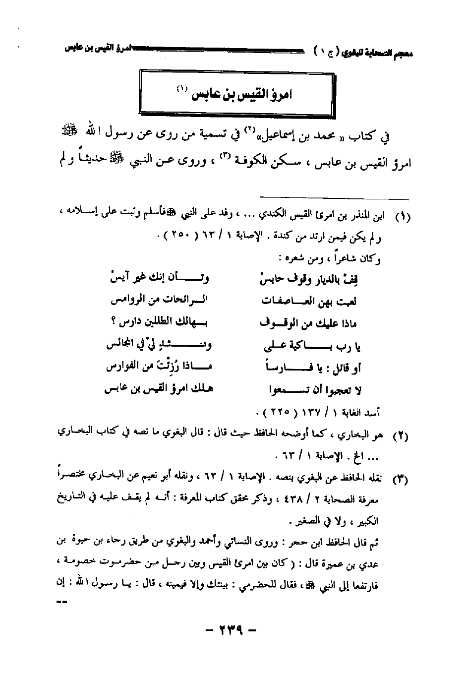 في كتاب محمد بن إسماعيل في تسمية من روى عن رسول الله صلى الله عليه وسلم امرؤ القيس بن عابس سكن الكوفة وروى عن النبي صلى الله عليه وسلم حديثا ولم