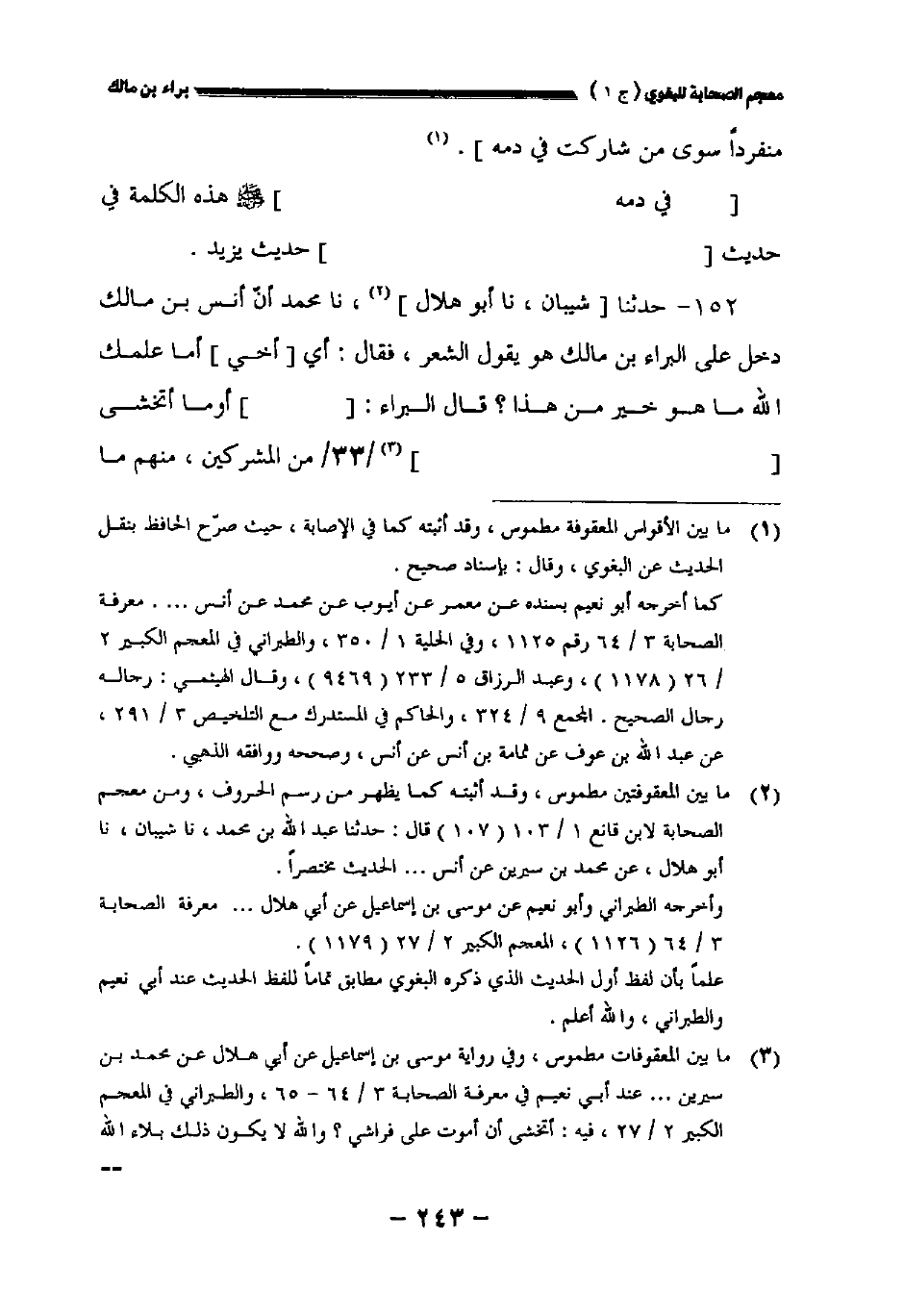 ١٥٢ - حدثنا [شيبان نا أبو هلال] نا محمد أن أنس بن مالك دخل على البراء بن مالك وهو يقول الشعر، فقال: أي [أخي] أما علمك الله ما هو خير من هذا؟ قال البراء: [] أوما أتخشى [] // ٣٣ // من المشركين منهم ما