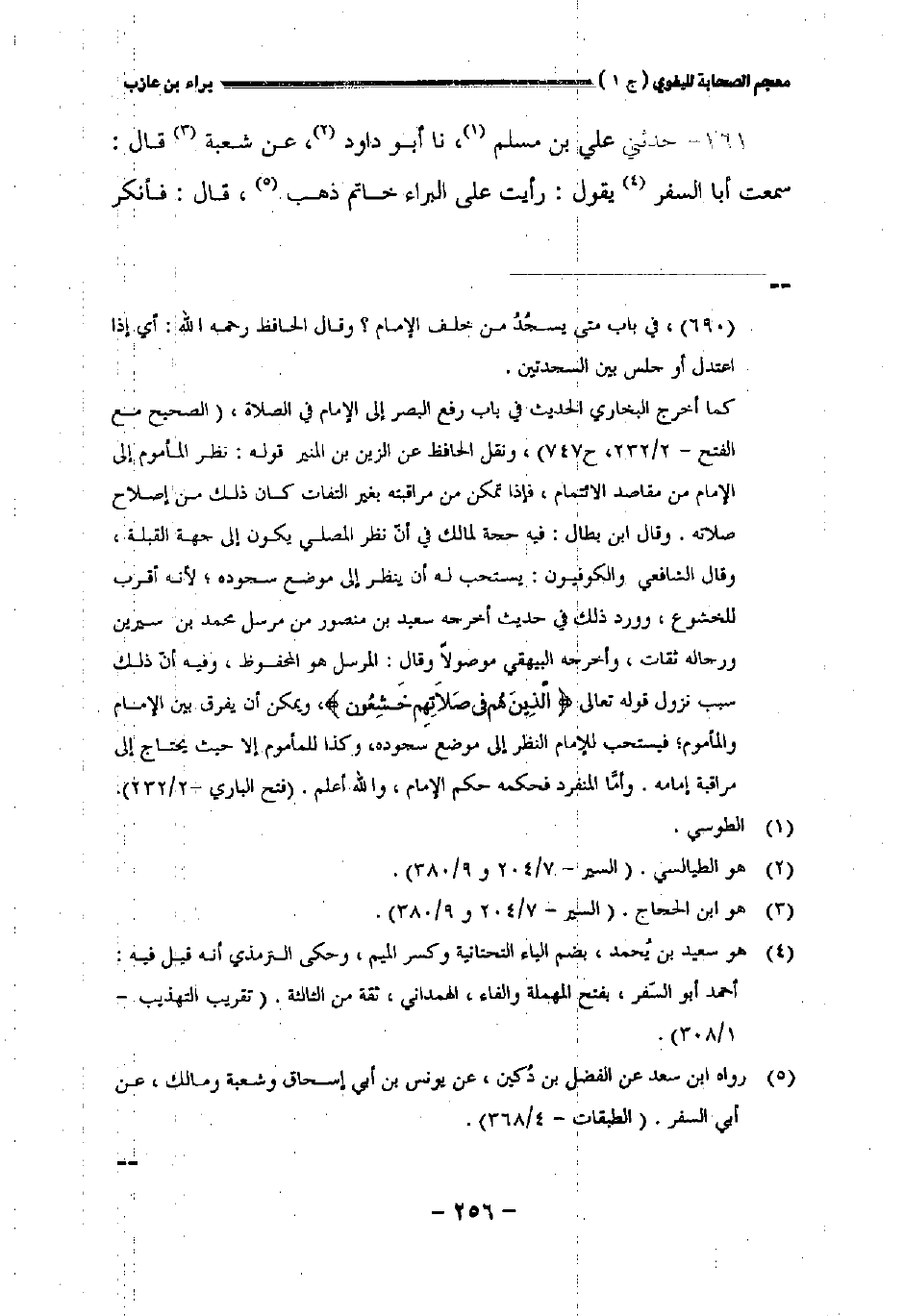 ١٦١ - حدثني علي بن مسلم نا أبو داود عن شعبة قال سمعت أبا السفر يقول: رأيت على البراء خاتم ذهب، قال: فأنكر