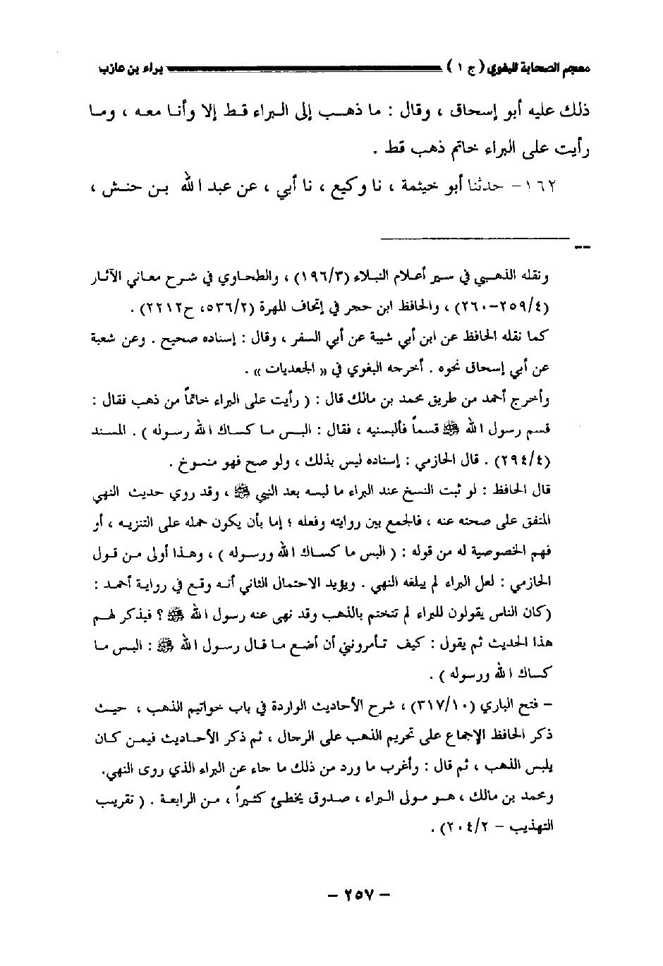 ذلك عليه أبو إسحاق وقال: ما ذهب إلى البراء قط إلا وأنا معه وما رأيت على البراء خاتم ذهب قط.