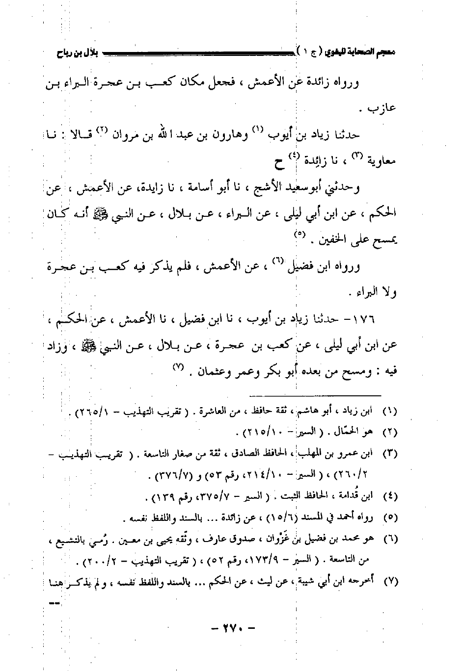 ١٧٦ - حدثنا زياد بن أيوب نا ابن فضيل نا الأعمش عن الحكم عن ابن أبي ليلى عن كعب بن عجرة عن بلال عن النبي صلى الله عليه وسلم وزاد فيه: ومسح من بعده أبو بكر وعمر وعثمان.