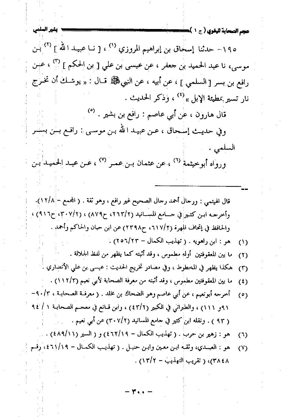 وفي حديث إسحاق عن عبيد الله بن موسى: رافع بن بسر السلمي.