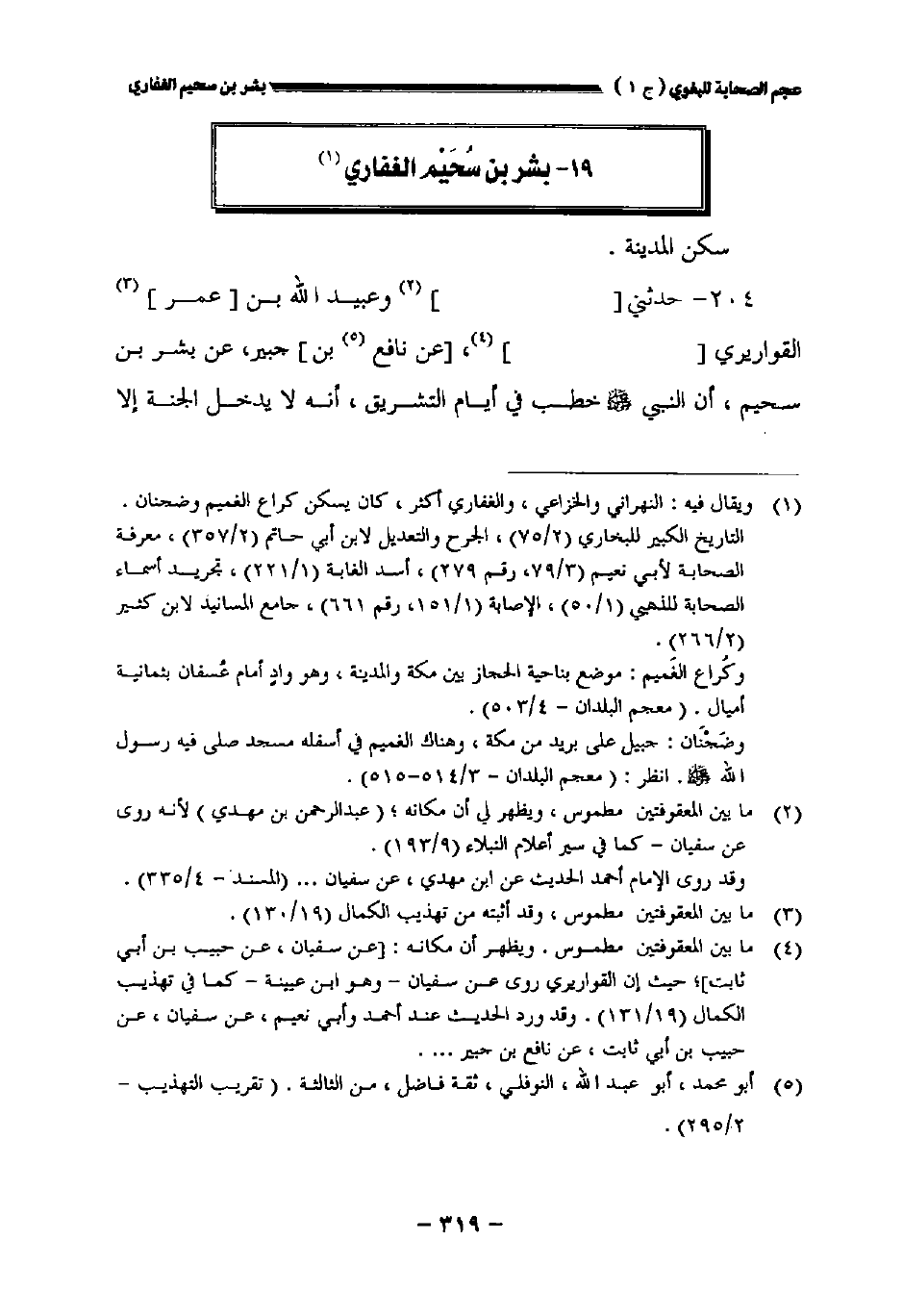 ١٩ - بشر بن سحيم الغفاري
