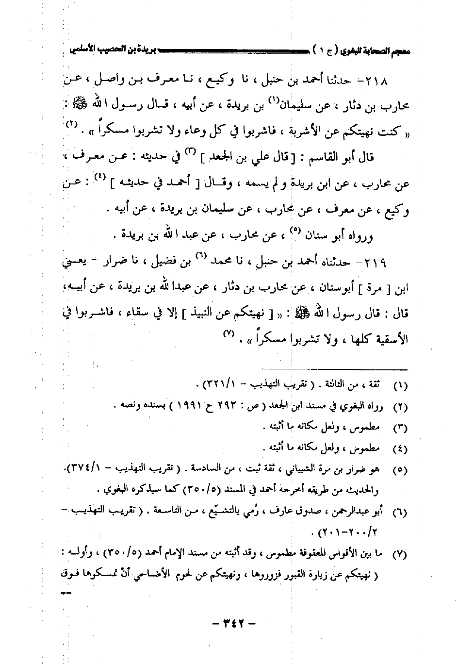 ٢١٨ - حدثنا أحمد بن حنبل نا وكيع نا معروف بن واصل عن محارب بن دثار عن سليمان بن بريدة عن أبيه قال رسول الله صلى الله عليه وسلم: " كنت نهيتكم عن الأشربة فاشربوا في كل وعاء ولا تشربوا مسكرا.