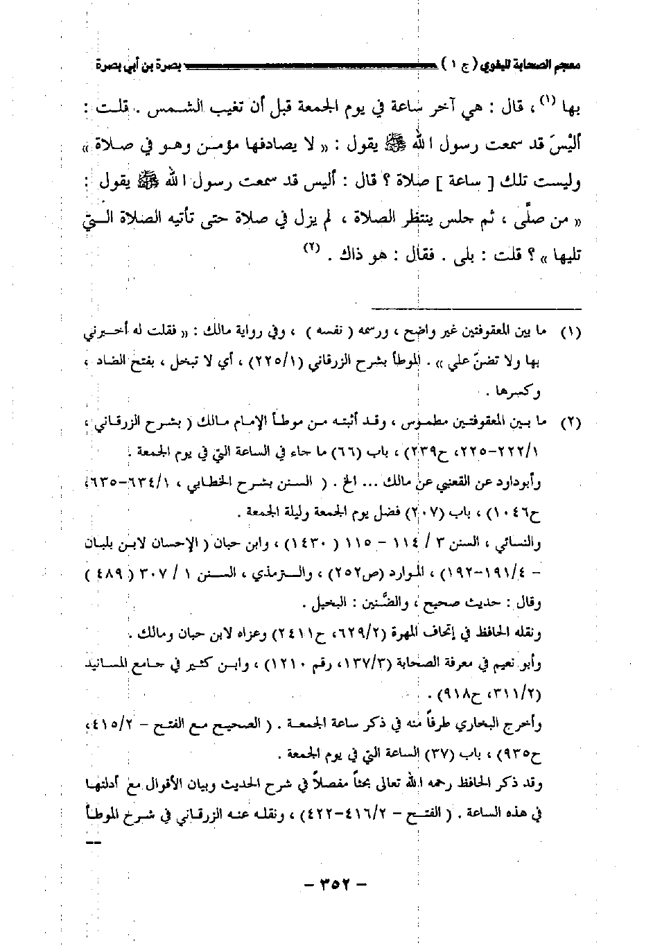 بها، قال: هي آخر ساعة في يوم الجمعة قبل أن تغيب الشمس. قلت: أليس قد سمعت رسول الله صلى الله عليه وسلم يقول: " لا يصادفها مؤمن وهو في الصلاة " وليست تلك [الساعة] صلاة؟ قال: أليس قد سمعت رسول الله صلى الله عليه وسلم يقول: " من صلى ثم جلس ينتظر الصلاة لم يزل في صلاة حتى تأتيه الصلاة التي تليها "؟ قلت: بلى. فقال: هو ذاك.