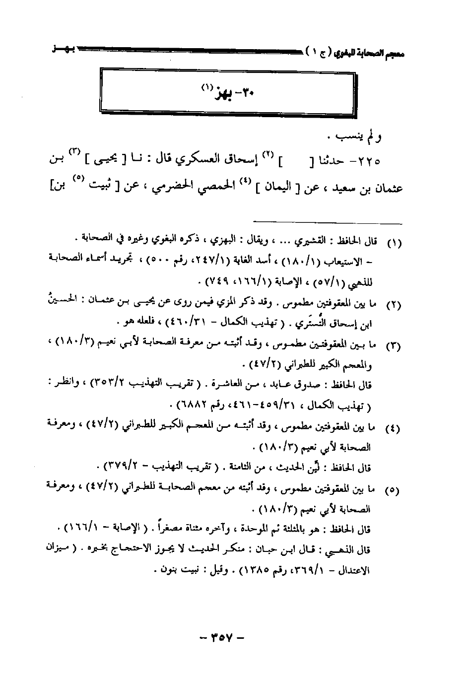 ٢٢٥ - حدثنا [] إسحاق العسكري قال: نا [يحيى] بن عثمان بن سعيد عن [اليمان] الحمصي الحضرمي عن [ثبيت بن]