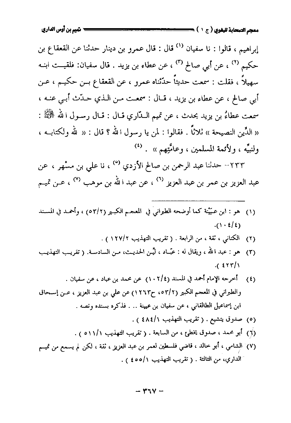 إبراهيم قالوا: نا سفيان قال: قال عمرو بن دينار حدثنا عن القعقاع بن حكيم عن أبي صالح عن عطاء بن يزيد قال سفيان: فلقيت ابنه سهيلا فقلت: سمعت حديثا حدثناه عمرو عن القعقاع بن حكيم عن أبي صالح عن عطاء بن يزيد قال سمعت من الذي حدث أبي عنه سمعت عطاء بن يزيد يحدث عن تميم الداري قال قال رسول الله صلى الله عليه وسلم: " الدين النصيحة " ثلاثا. فقالوا: لمن يارسول الله؟ قال: " لله ولكتابه ولنبيه ولأئمة المسلمين وعامتهم.