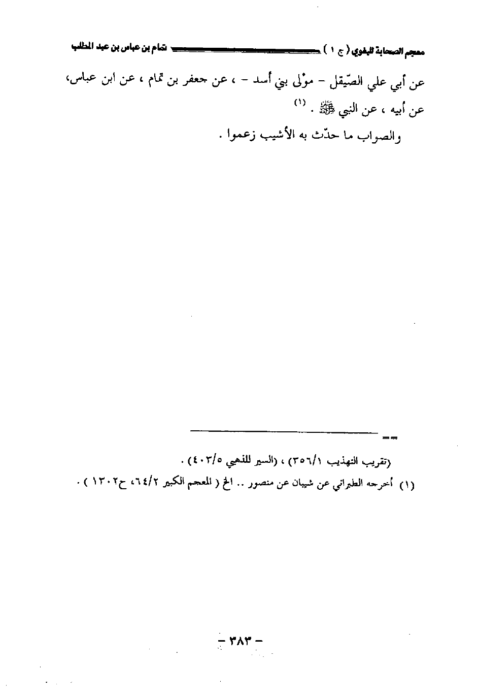 عن أبي علي الصيقل - مولى بني أسد - عن جعفر بن تمام عن ابن عباس عن أبيه عن النبي صلى الله عليه وسلم.