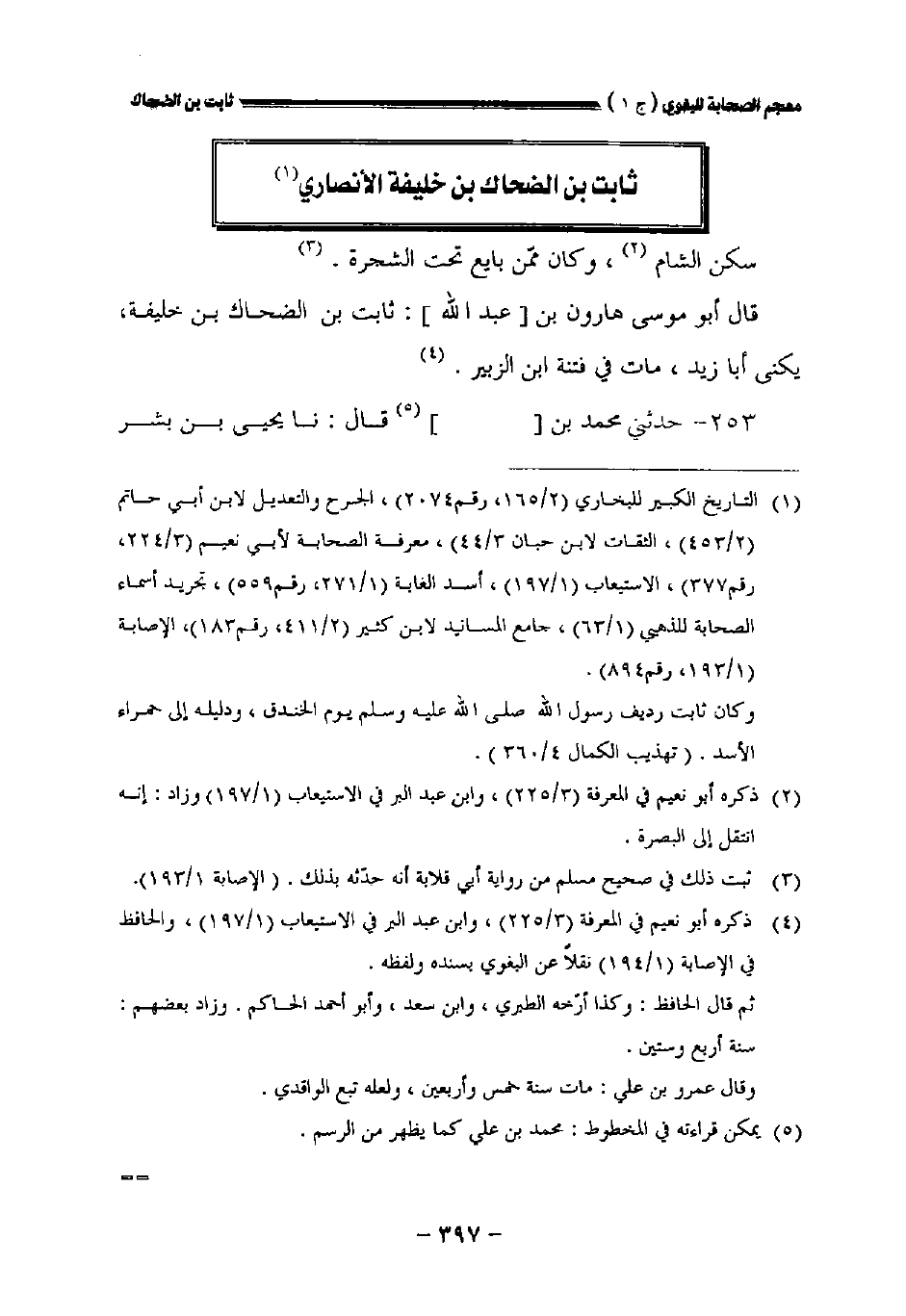 قال أبو موسى هارون بن [عبد الله]: ثابت بن الضحاك بن خليفة يكنة أبا زيد مات في فتنة ابن الزبير.
