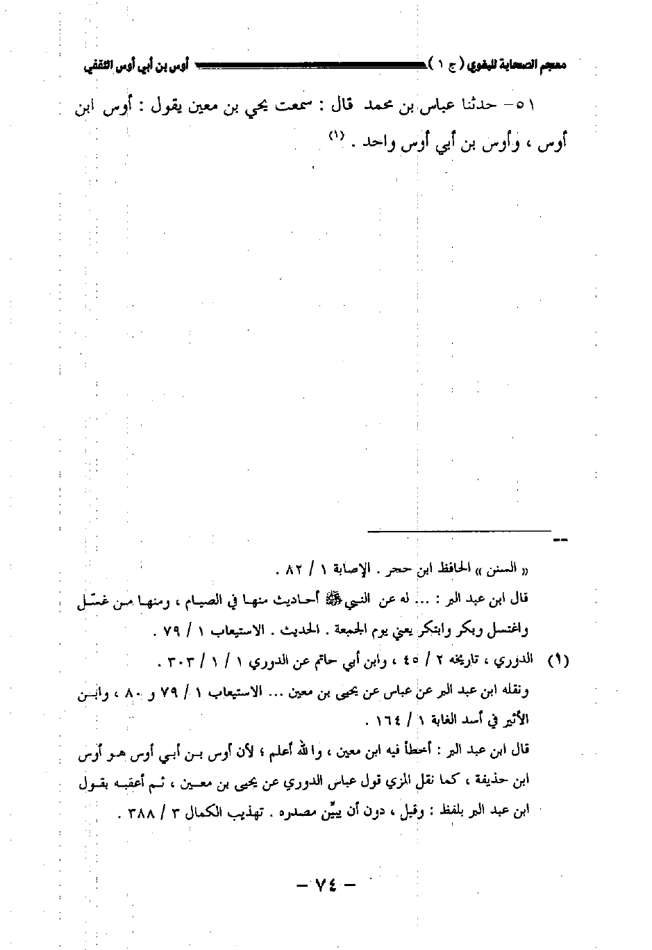 ٥١ - حدثنا عباس بن محمد قال سمعت يحيى بن معين يقول: أوس بن أوس وأوس بن أبي أوس واحد.