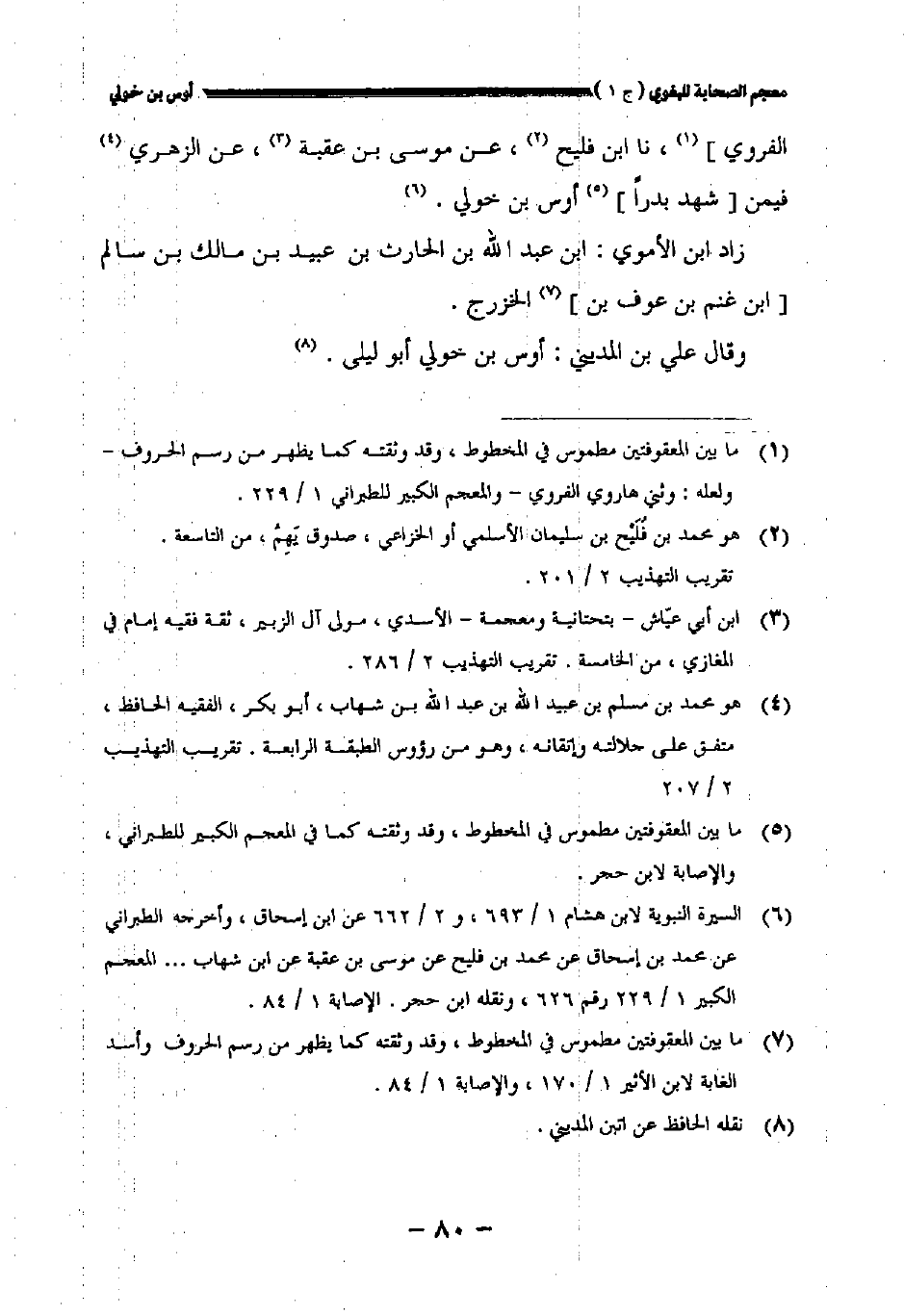 الفروي] نا ابن فليح عن موسى بن عقبة عن الزهري فيمن [شهد بدرا] أوس بن خولي.