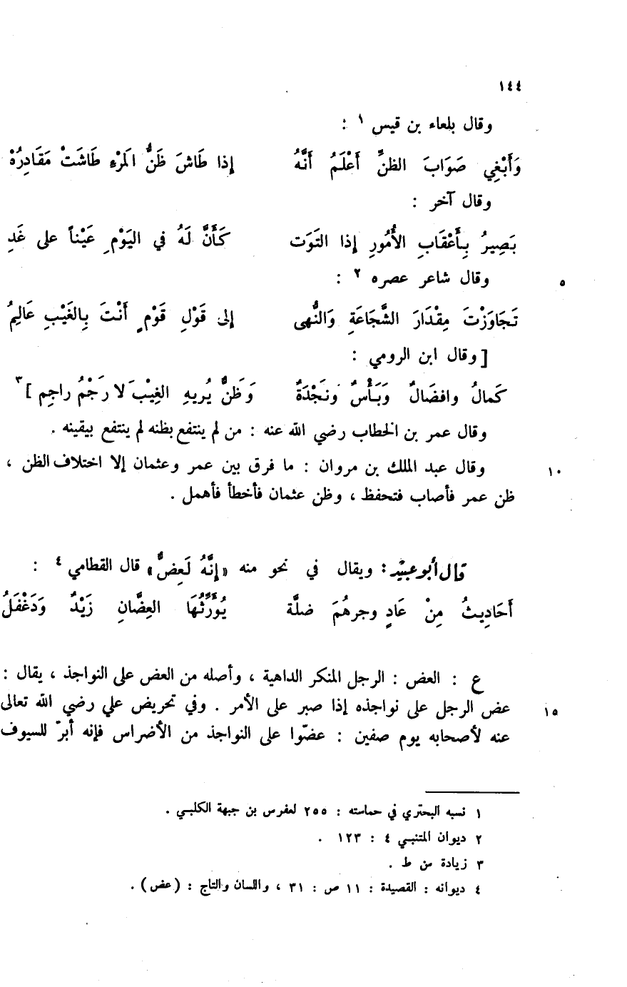 (4) ديوانه: القصيدة: 11 ص: 31، واللسان والتاج: (عض) .