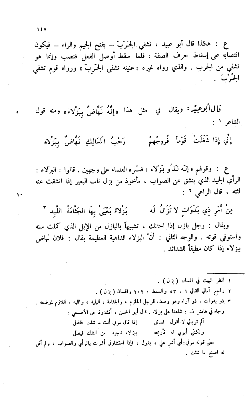 قال أبو عبيد: ويقال في مثل هذا " إنه نهاض ببزلاء " ومنه قول الشاعر (1) :