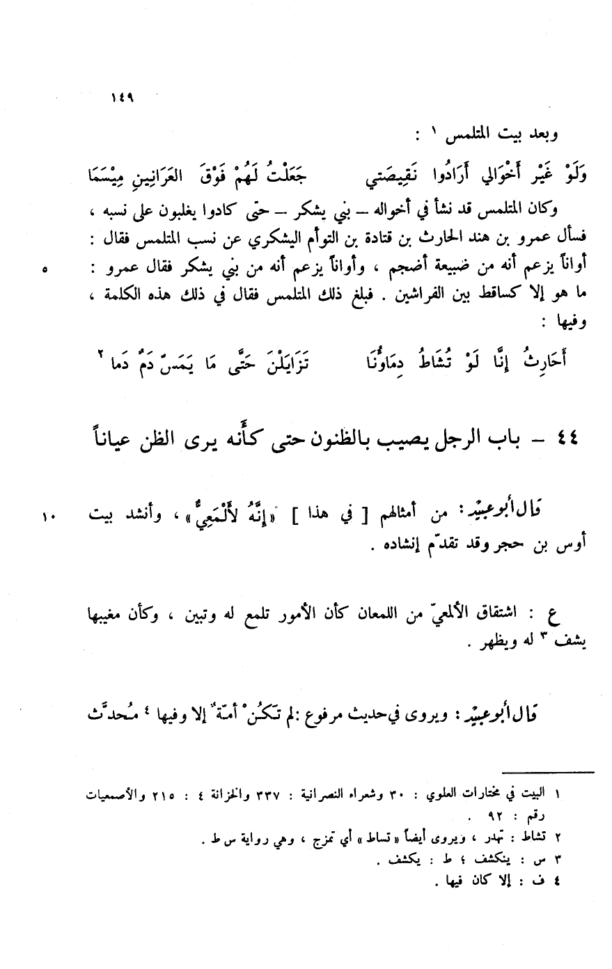 أحارث إنا لو تشاط دماؤنا ... تزايلن حتى ما يمس دم دما (2) 44؟ باب الرجل يصيب بالظنون حتى كأنه يرى الظن عياناً