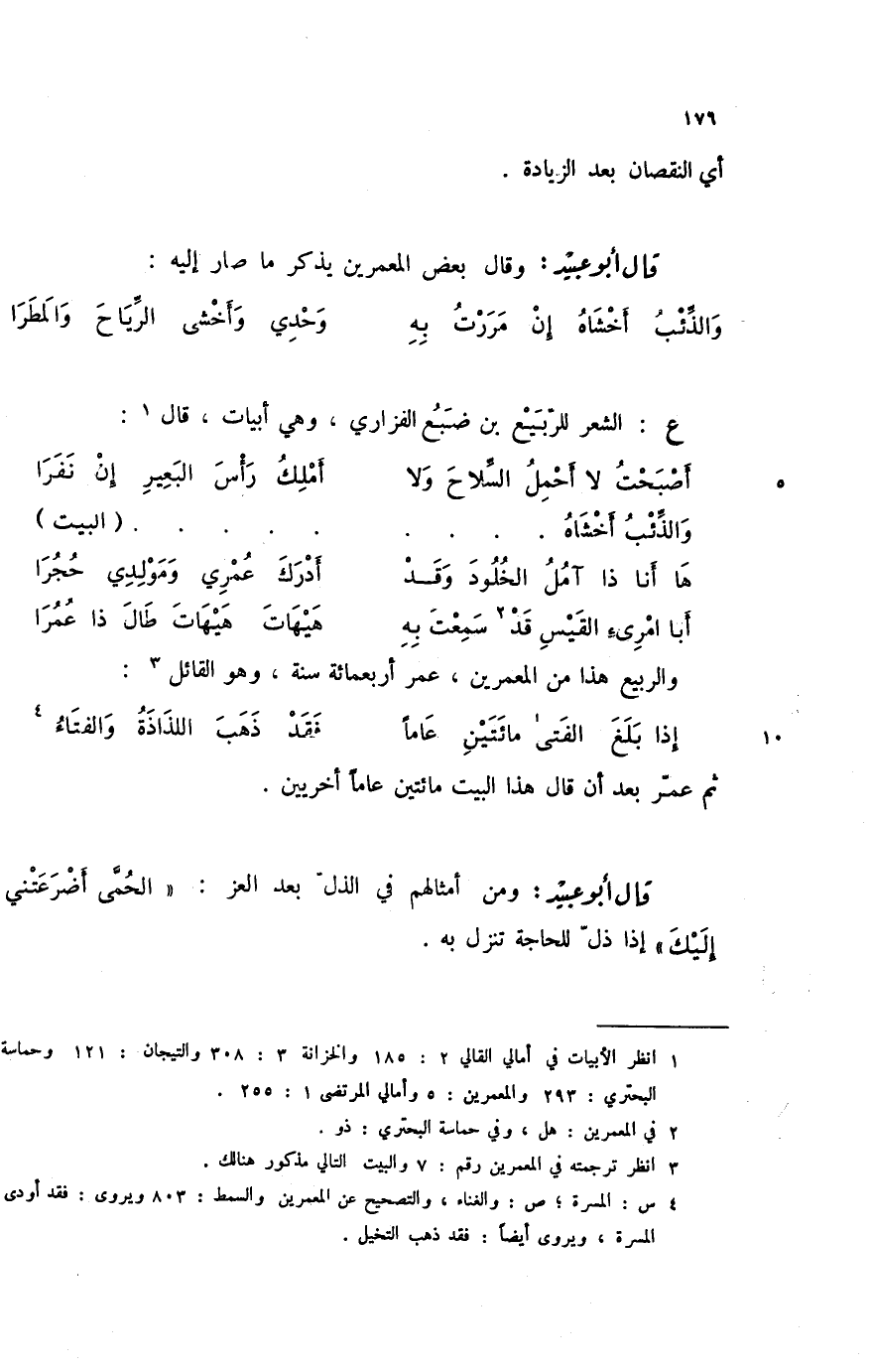 إذا بلغ الفتى مائتين عاماً ... (4) فقد ذهب اللذاذة والفتاء ثم عمر بعد أن قال هذا البيت مائتين عاماً أخريين.