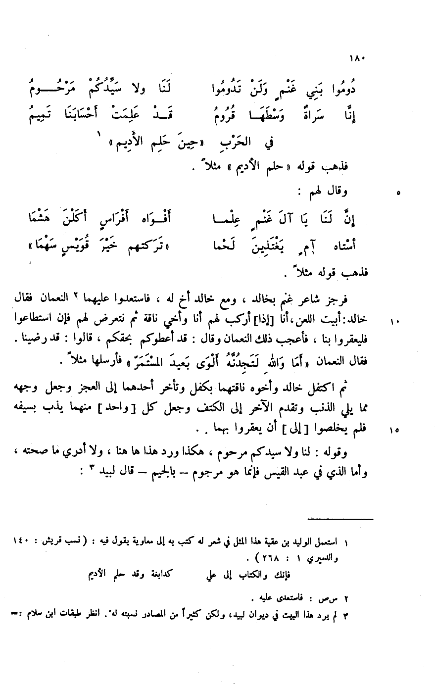 (3) لم يرد هذا البيت في ديوان لبيد، ولكن كثيراً من المصادر نسبته له. انظر طبقات ابن سلام: 384 والبيان 1: 263 والعيني 4: 548 واللسان (رجم) وسيبويه 2: 291 وصدره وقبيل من لكير شاهد.