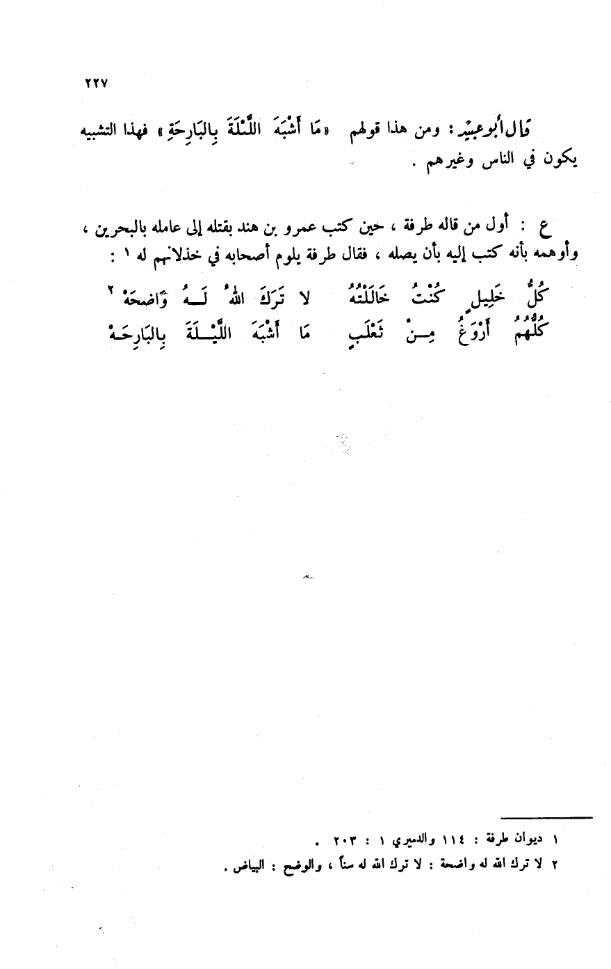 قال أبو عبيد: ومن هذا قولهم " ما أشبه الليلة بالبارحة " فهذا التشبيه يكون في الناس وغيرهم.