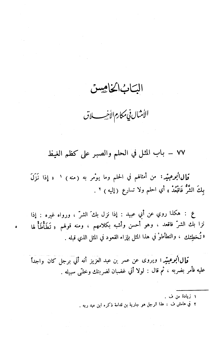 77 -؟ باب المثل في الحلم والصبر على كظم الغيظ