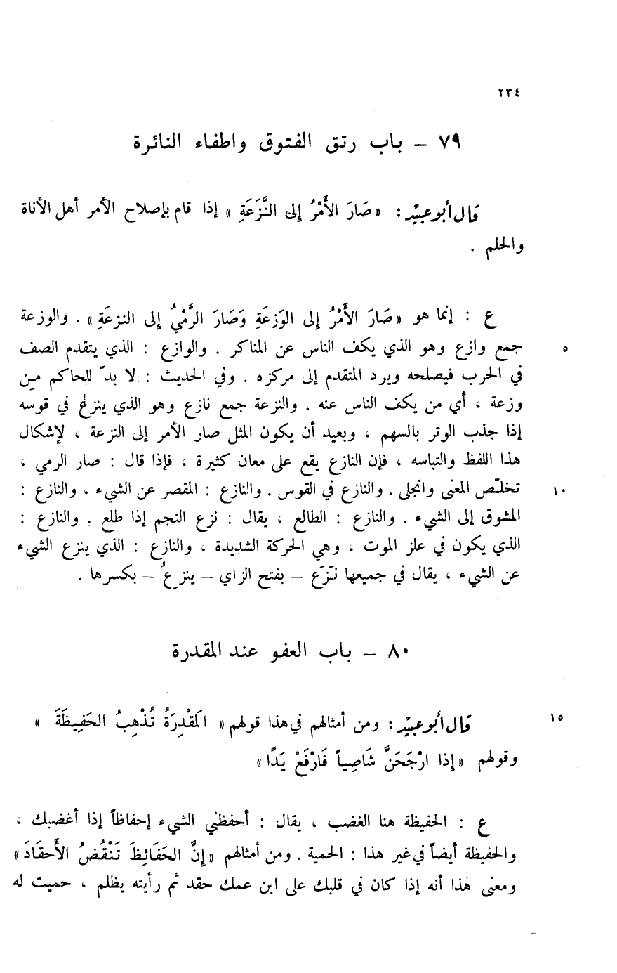 قال أبو عبيد: " صار الأمر إلى النزعة " إذا قال بإصلاح أهل الأناة والحلم.