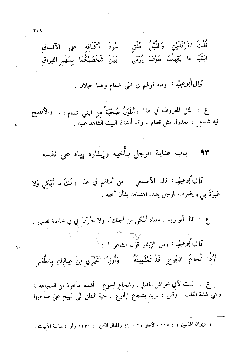 (1) ديوان الهذليين 2: 117 والأغاني 21: 42 والمعاني الكبير: 1231 وأورد مناسبة الأبيات.