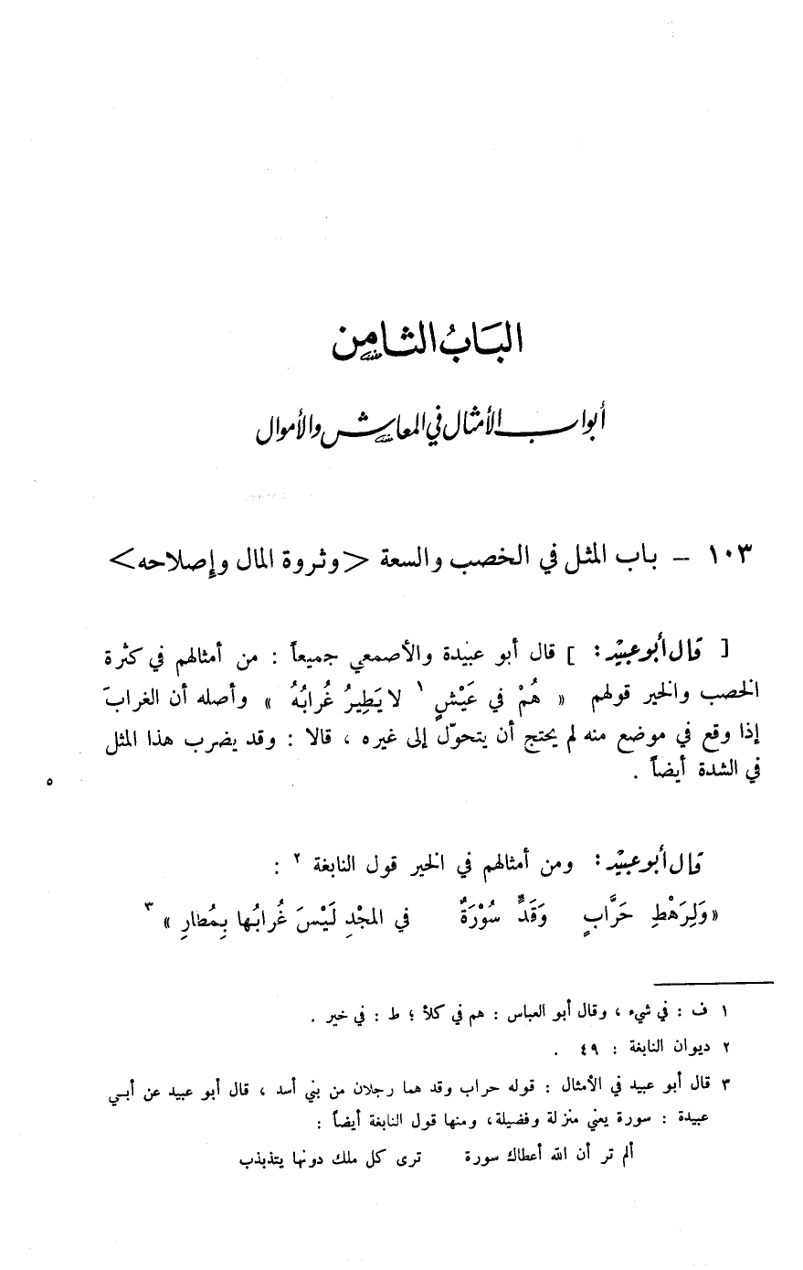 أبواب الأمثال في المعاش والأموال