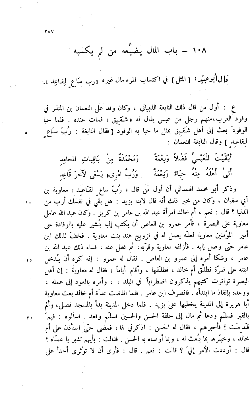 108 -؟ باب المال يضيعه من لم يكسبه