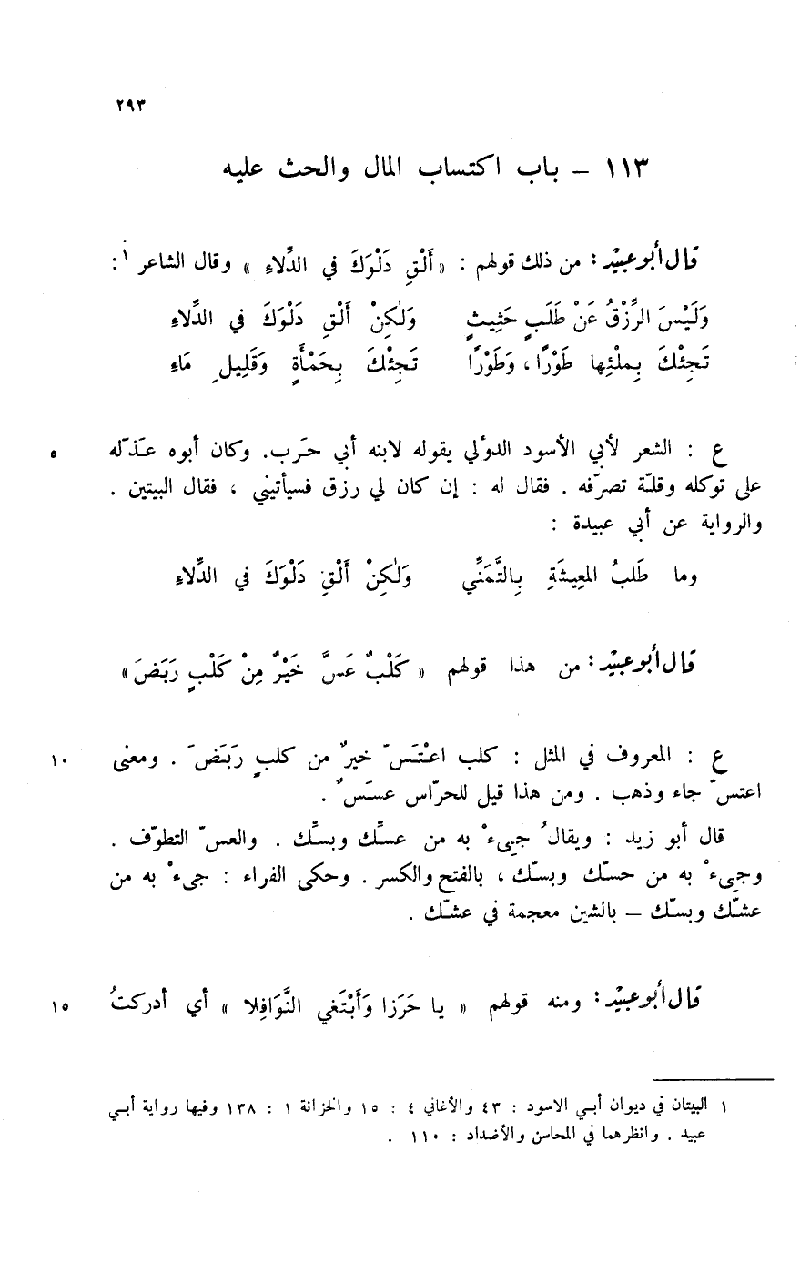 (1) البيتان في ديوان أبي الأسود: 43 واغاني 4: 15 والخزانة 1: 138 وفيها رواية أبي عبيد. وانظرهما في المحاسن والأضداد: 110.