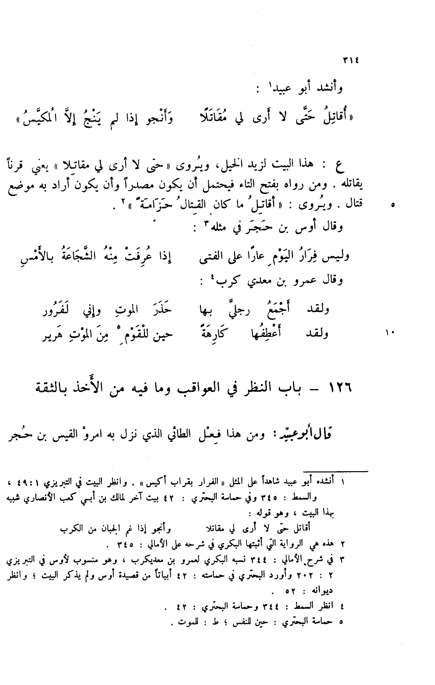 (5) حماسة البحتري: حين للنفس؛ ط: للموت.