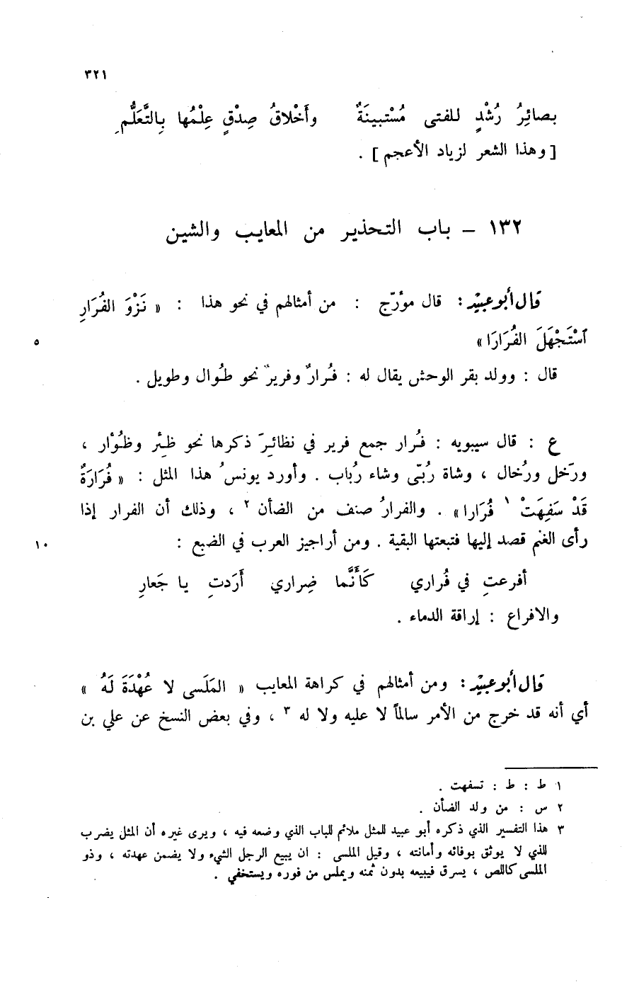 قال أبو عبيد: قال مؤرخ: من أمثالهم في نحو هذا: " نزو الفرار استجهل الفرارا "