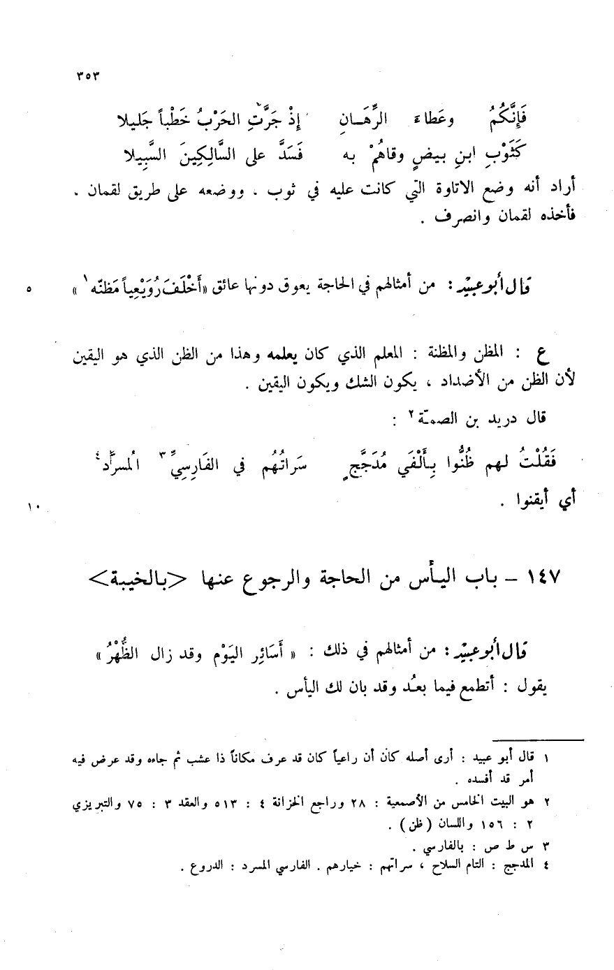 فقلت لهم ظنوا بألفي مدججٍ ... سراتهم في الفارسي (3) المسرد (4) أي أيقنوا.
