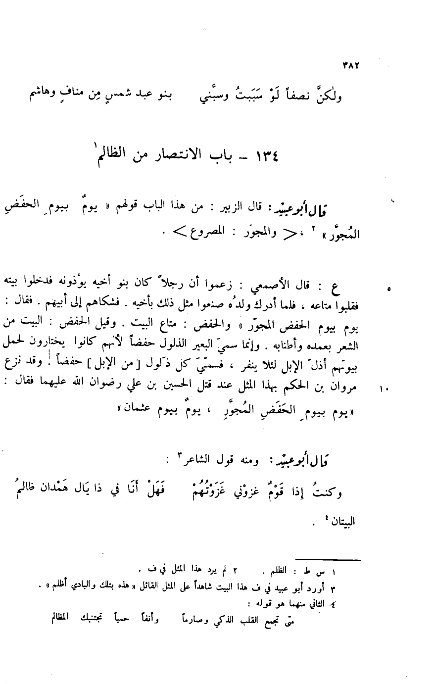 ولكن نصفاً لو سببت وسبني ... بنو عبد شمس من مناف وهاشم 134؟ باب الانتصار من الظالم (1)