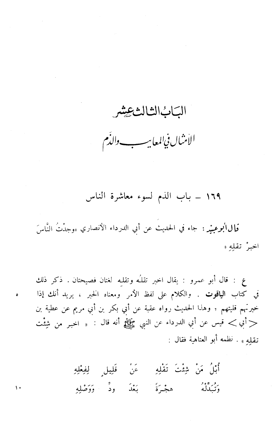 قال أبو عبيد: جاء في الحديث عن أبي الدرداء الأنصاري " وجدت الناس أخبر تقله "