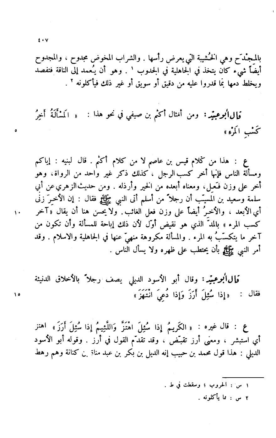 قال أبو عبيد: ومن أمثال أكثم بن صيفي في نحو هذا: " المسألة أخر كسب المرء "