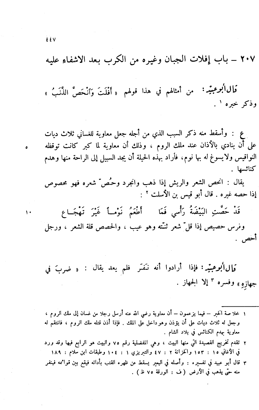 (3) قال أبو عبيد في تفسيره: واصله في البعير يسقط عن ظهره القتب بأداته فيقع بين قوائمه فينفر منه حتى يذهب في الأرض (ف: الورقة 75 ظ) .