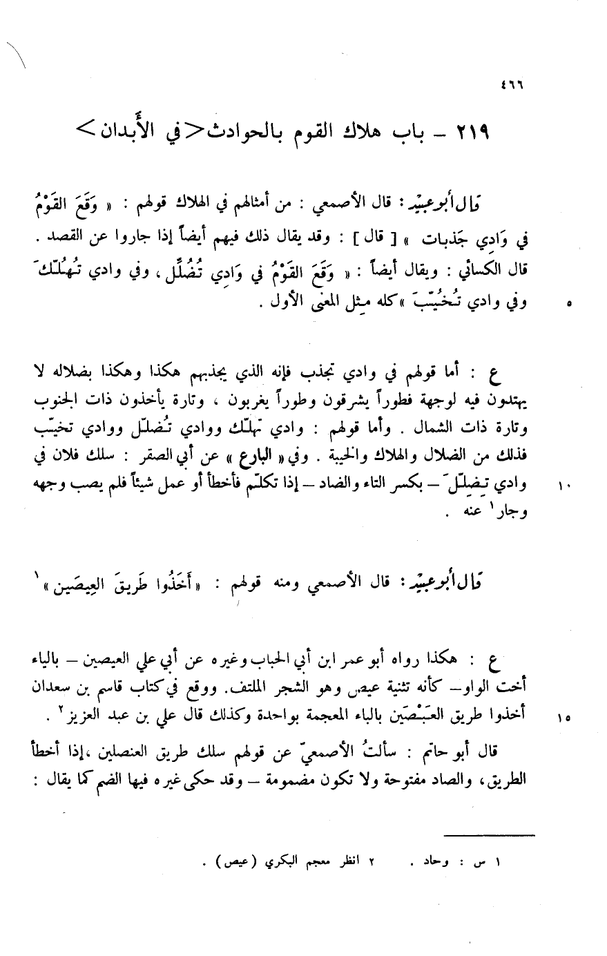 ع: هكذا رواه أبو عمر ابن احباب وغيره عن أبي علي العيصين؟ بالياء أخت الواو؟ كأنه تثنية عيص وهو الشجر املتف. ووقع في كتاب قاسم بن سعدان أخذوا طريق العبصين بالباء المعجمة بواحدة وكذلك قال علي بن عبد العزيز.