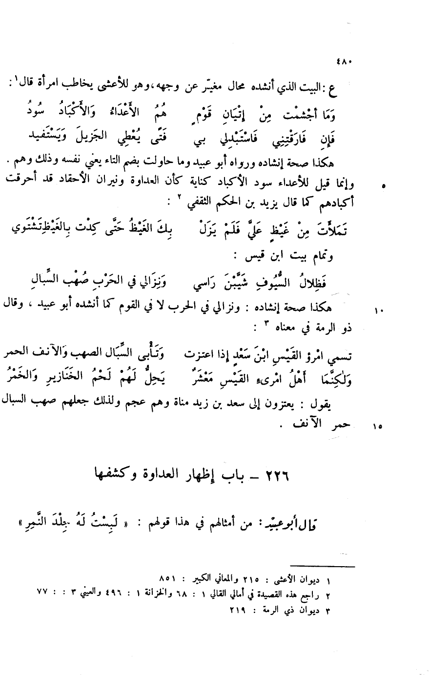 ولكنما أهل امرئ القيس معشر ... يحل لهم الخنازير والخمر يقول: يعتزون إلى سعد بن زيد مناة وهم عجم ولذلك جعلهم صهب السبال حمر الآنف.