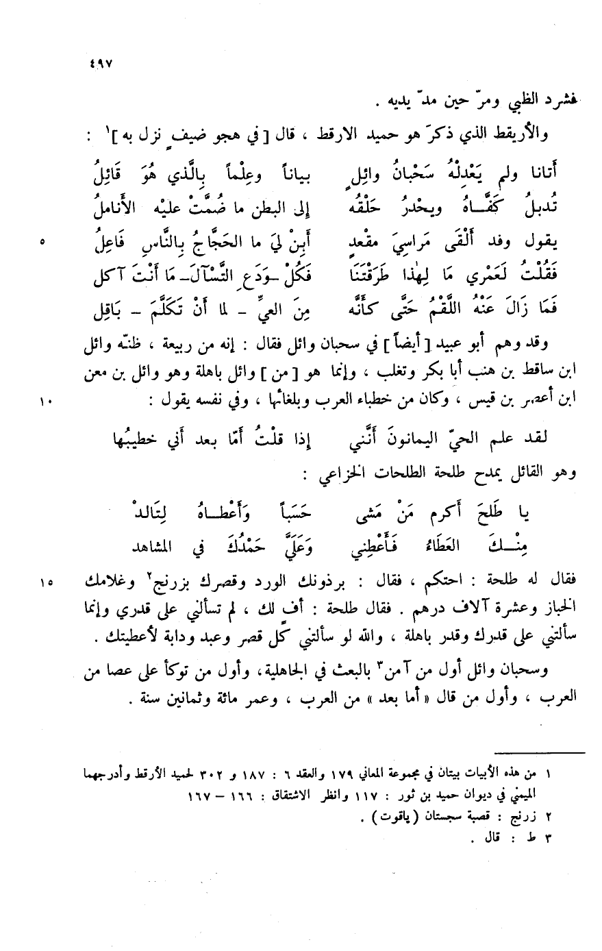 (1) من هذه الأبيات بيتان في مجموعة المعاني 179 والعقد 6: 187 و 302 لحميد الأرقط وأدرجهما الميمني في ديوان حميد بن ثور: 117 وانظر الاشتقاق: 166 - 167.