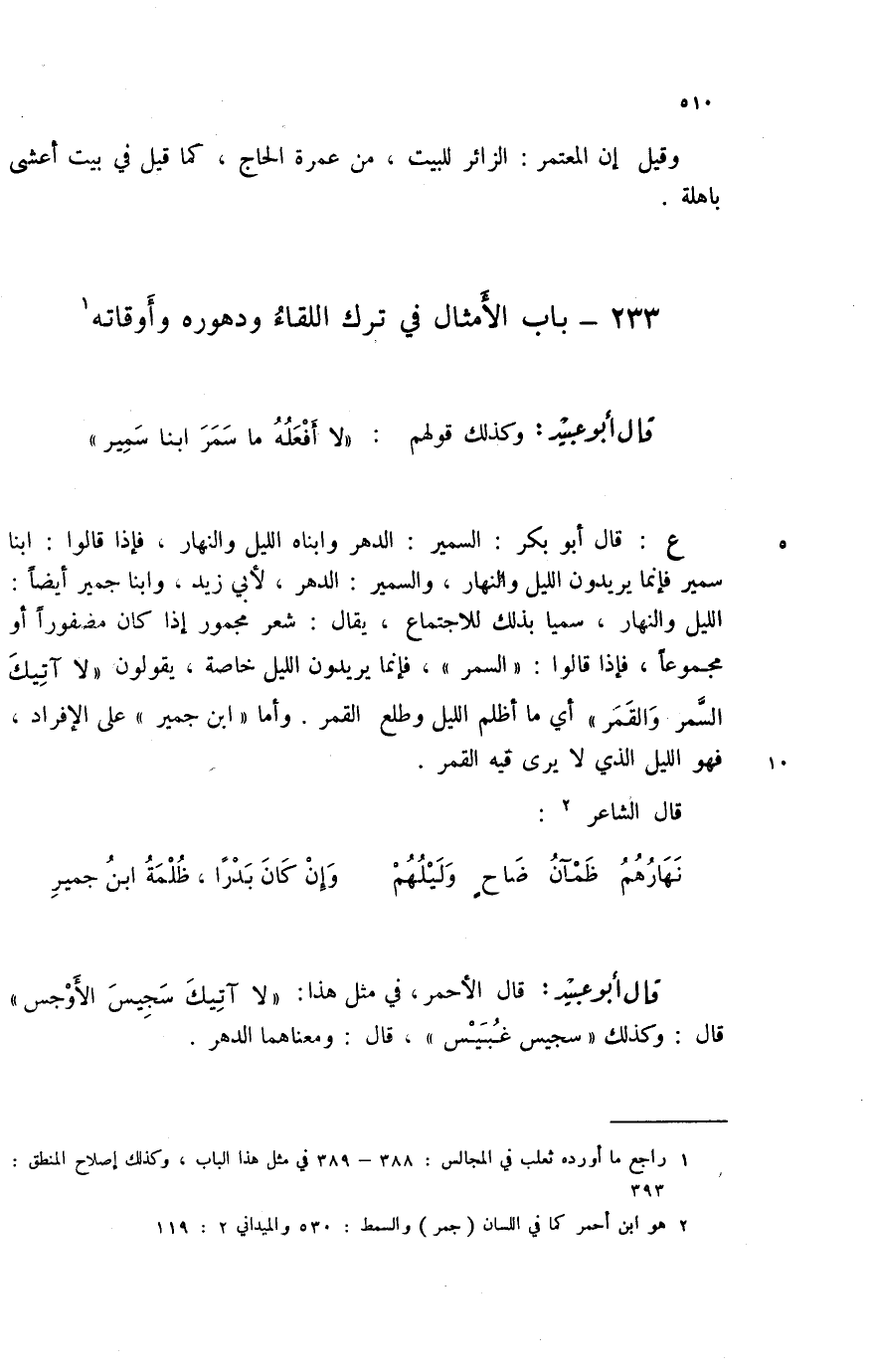 (1) راجع ما أورده ثعلب في المجالس: 388 - 389 في مثل هذا الباب، وكذلك إصلاح المنطق: 393.