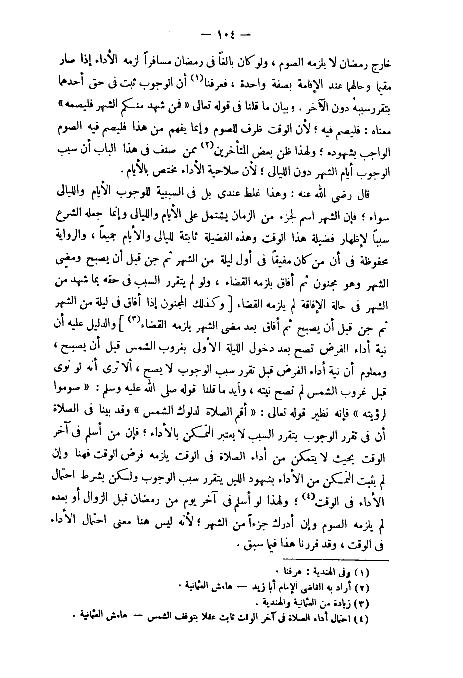 قَالَ رَضِي الله عَنهُ وَهَذَا غلط عِنْدِي بل فِي السَّبَبِيَّة للْوُجُوب الْأَيَّام والليالي سَوَاء فَإِن الشَّهْر اسْم لجزء من الزَّمَان يشْتَمل على الْأَيَّام والليالي وَإِنَّمَا جعله الشَّرْع سَببا لإِظْهَار فَضِيلَة هَذَا الْوَقْت وَهَذِه الْفَضِيلَة ثَابِتَة لليالي وَالْأَيَّام جَمِيعًا وَالرِّوَايَة مَحْفُوظَة فِي أَن من كَانَ مفيقا فِي أول لَيْلَة من الشَّهْر ثمَّ جن قبل أَن يصبح وَمضى الشَّهْر وَهُوَ مَجْنُون ثمَّ أَفَاق يلْزمه الْقَضَاء وَلَو لم يَتَقَرَّر السَّبَب فِي حَقه بِمَا شهد من الشَّهْر فِي حَالَة الْإِفَاقَة لم يلْزمه الْقَضَاء (وَكَذَلِكَ الْمَجْنُون إِذا أَفَاق فِي لَيْلَة من الشَّهْر ثمَّ جن قبل أَن يصبح ثمَّ أَفَاق بعد مُضِيّ الشَّهْر يلْزمه الْقَضَاء) وَالدَّلِيل عَلَيْهِ أَن نِيَّة أَدَاء الْفَرْض تصح بعد دُخُول اللَّيْلَة الأولى بغروب الشَّمْس قبل أَن يصبح وَمَعْلُوم أَن نِيَّة أَدَاء الْفَرْض قبل تقرر سَبَب الْوُجُوب لَا يَصح أَلا ترى أَنه لَو نوى قبل غرُوب الشَّمْس لم تصح نِيَّته وأيد مَا قُلْنَا قَوْله صلى الله عَلَيْهِ وَسلم صُومُوا لرُؤْيَته فَإِنَّهُ نَظِير قَوْله تَعَالَى {أقِم الصَّلَاة لدلوك الشَّمْس} وَقد بَينا فِي الصَّلَاة أَن فِي تقرر الْوُجُوب بتقرر السَّبَب لَا يعْتَبر التَّمَكُّن بِالْأَدَاءِ فَإِن من أسلم فِي آخر الْوَقْت بِحَيْثُ لَا يتَمَكَّن من أَدَاء الصَّلَاة فِي الْوَقْت يلْزمه فرض الْوَقْت فَهُنَا وَإِن لم يثبت التَّمَكُّن من الْأَدَاء بِشُهُود اللَّيْل يَتَقَرَّر سَبَب الْوُجُوب وَلَكِن بِشَرْط احْتِمَال الْأَدَاء فِي الْوَقْت وَلِهَذَا لَو أسلم فِي آخر يَوْم من رَمَضَان قبل الزَّوَال أَو بعده لم يلْزمه الصَّوْم وَإِن أدْرك جُزْءا من الشَّهْر لِأَنَّهُ لَيْسَ هُنَا معنى احْتِمَال الْأَدَاء فِي الْوَقْت وَقد قَررنَا هَذَا فِيمَا سبق