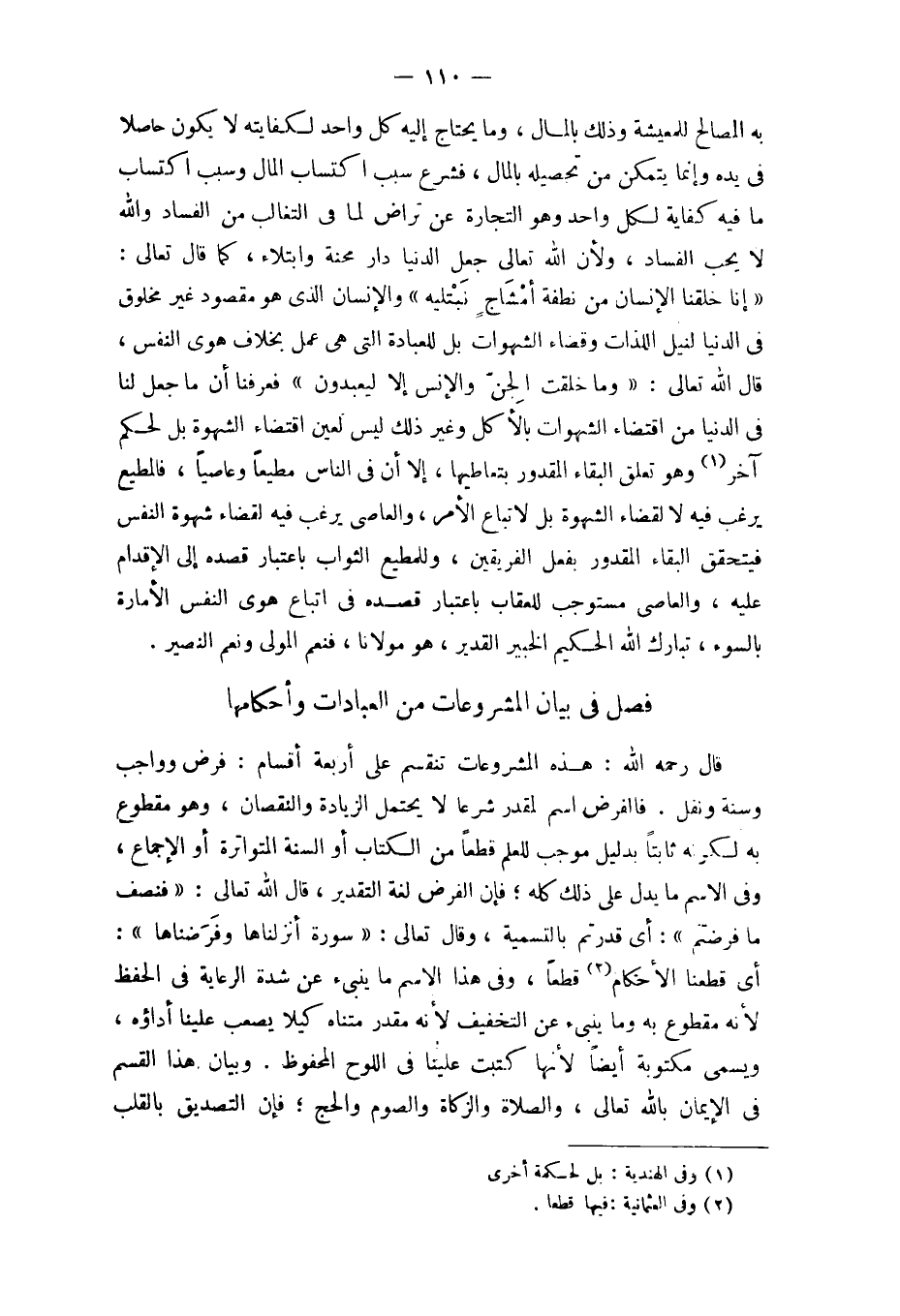 فصل فِي بَيَان المشروعات من الْعِبَادَات وأحكامها