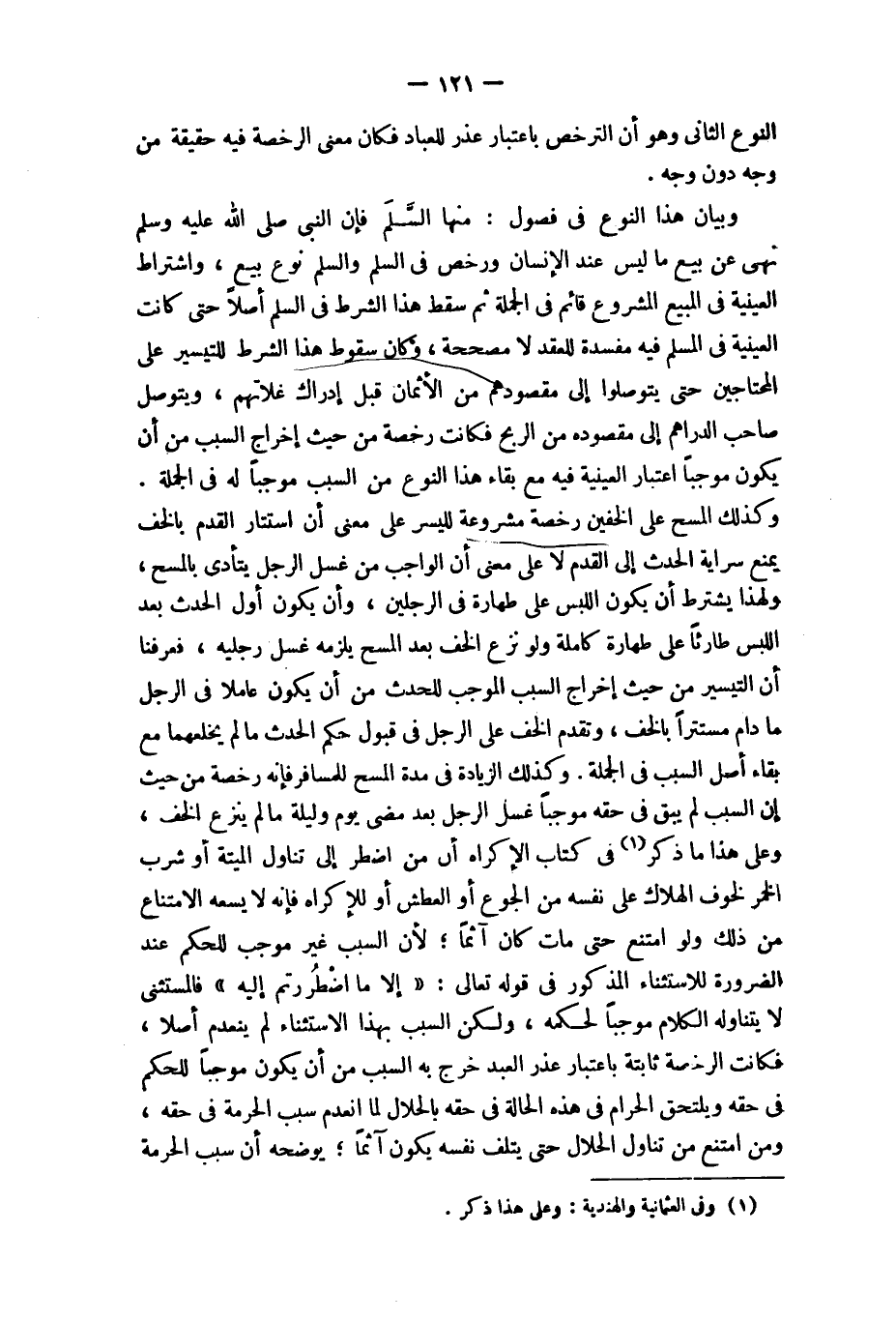 وَبَيَان هَذَا النَّوْع فِي فُصُول مِنْهَا السّلم فَإِن النَّبِي صلى الله عَلَيْهِ وَسلم نهى عَن بيع مَا لَيْسَ عِنْد الْإِنْسَان وَرخّص فِي السّلم وَالسّلم نوع بيع وَاشْتِرَاط العينية فِي الْمَبِيع الْمَشْرُوع قَائِم فِي الْجُمْلَة ثمَّ سقط هَذَا الشَّرْط فِي السّلم أصلا حَتَّى كَانَت العينية فِي الْمُسلم فِيهِ مفْسدَة للْعقد لَا مصححة وَكَانَ سُقُوط هَذَا الشَّرْط للتيسير على المحتاجين حَتَّى يتوصلوا إِلَى مقصودهم من الْأَثْمَان قبل إِدْرَاك غلاتهم ويتوصل صَاحب الدَّرَاهِم إِلَى مَقْصُوده من الرِّبْح فَكَانَت رخصَة من حَيْثُ إِخْرَاج السَّبَب من أَن يكون مُوجبا اعْتِبَار العينية فِيهِ مَعَ بَقَاء هَذَا النَّوْع من السَّبَب مُوجبا لَهُ فِي الْجُمْلَة