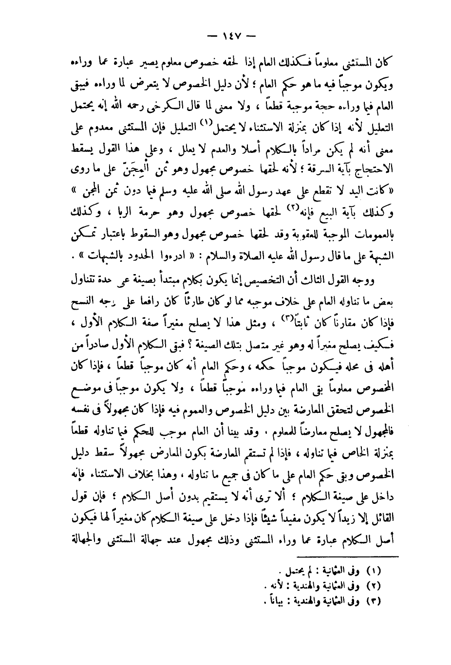 كَانَ الْمُسْتَثْنى مَعْلُوما فَكَذَلِك الْعَام إِذا لحقه خُصُوص مَعْلُوم يصير عبارَة عَمَّا وَرَاءه وَيكون مُوجبا فِيهِ مَا هُوَ حكم الْعَام لِأَن دَلِيل الْخُصُوص لَا يتَعَرَّض لما وَرَاءه فَيبقى الْعَام فِيمَا وَرَاءه حجَّة مُوجبَة قطعا وَلَا معنى لما قَالَ الْكَرْخِي رَحمَه الله إِنَّه يحْتَمل التَّعْلِيل لِأَنَّهُ إِذا كَانَ بِمَنْزِلَة الِاسْتِثْنَاء لَا يحْتَمل التَّعْلِيل فَإِن الْمُسْتَثْنى مَعْدُوم على معنى أَنه لم يكن مرَادا بالْكلَام أصلا والعدم لَا يُعلل وعَلى هَذَا القَوْل يسْقط الِاحْتِجَاج بِآيَة السّرقَة لِأَنَّهُ لحقها خُصُوص مَجْهُول وَهُوَ ثمن الْمِجَن على مَا رُوِيَ كَانَت الْيَد لَا تقطع على عهد رَسُول الله صلى الله عَلَيْهِ وَسلم فِيمَا دون ثمن الْمِجَن وَكَذَلِكَ بِآيَة البيع فَإِنَّهُ لحقها خُصُوص مَجْهُول وَهُوَ حُرْمَة الرِّبَا وَكَذَلِكَ بالعمومات الْمُوجبَة للعقوبة وَقد لحقها خُصُوص مَجْهُول وَهُوَ السُّقُوط بِاعْتِبَار تمكن الشُّبْهَة على مَا قَالَ رَسُول الله عَلَيْهِ الصَّلَاة وَالسَّلَام ادرؤوا الْحُدُود بِالشُّبُهَاتِ