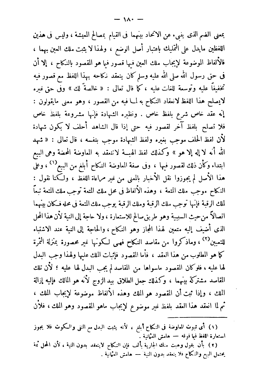 بِمَعْنى الضَّم الَّذِي ينبىء عَن الِاتِّحَاد بَينهمَا فِي الْقيام غَيره لَا يصلح هَذَا اللَّفْظ لانعقاد النِّكَاح بِهِ لما فِيهِ من الْقُصُور وَهُوَ معنى مَا يَقُولُونَ إِنَّه عقد خَاص شرع بِلَفْظ خَاص