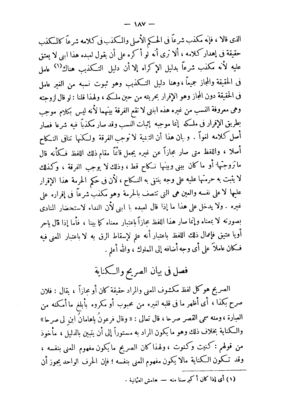 فصل فِي بَيَان الصَّرِيح وَالْكِنَايَة